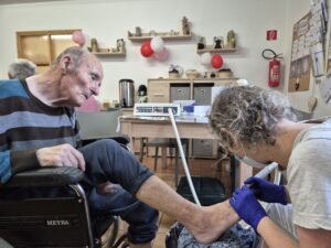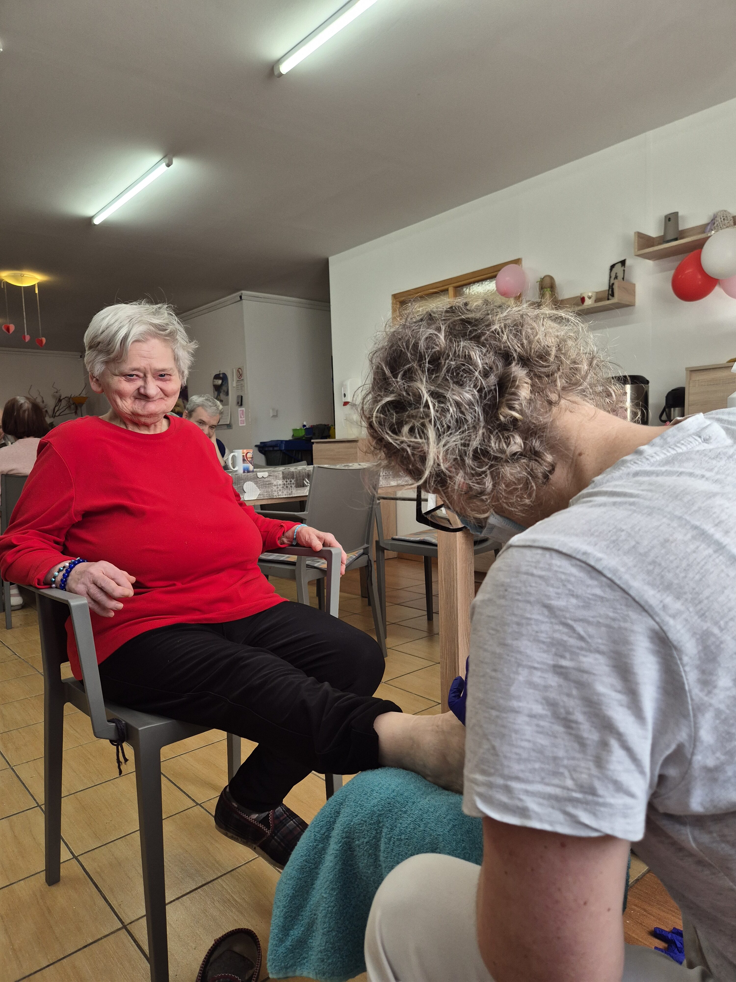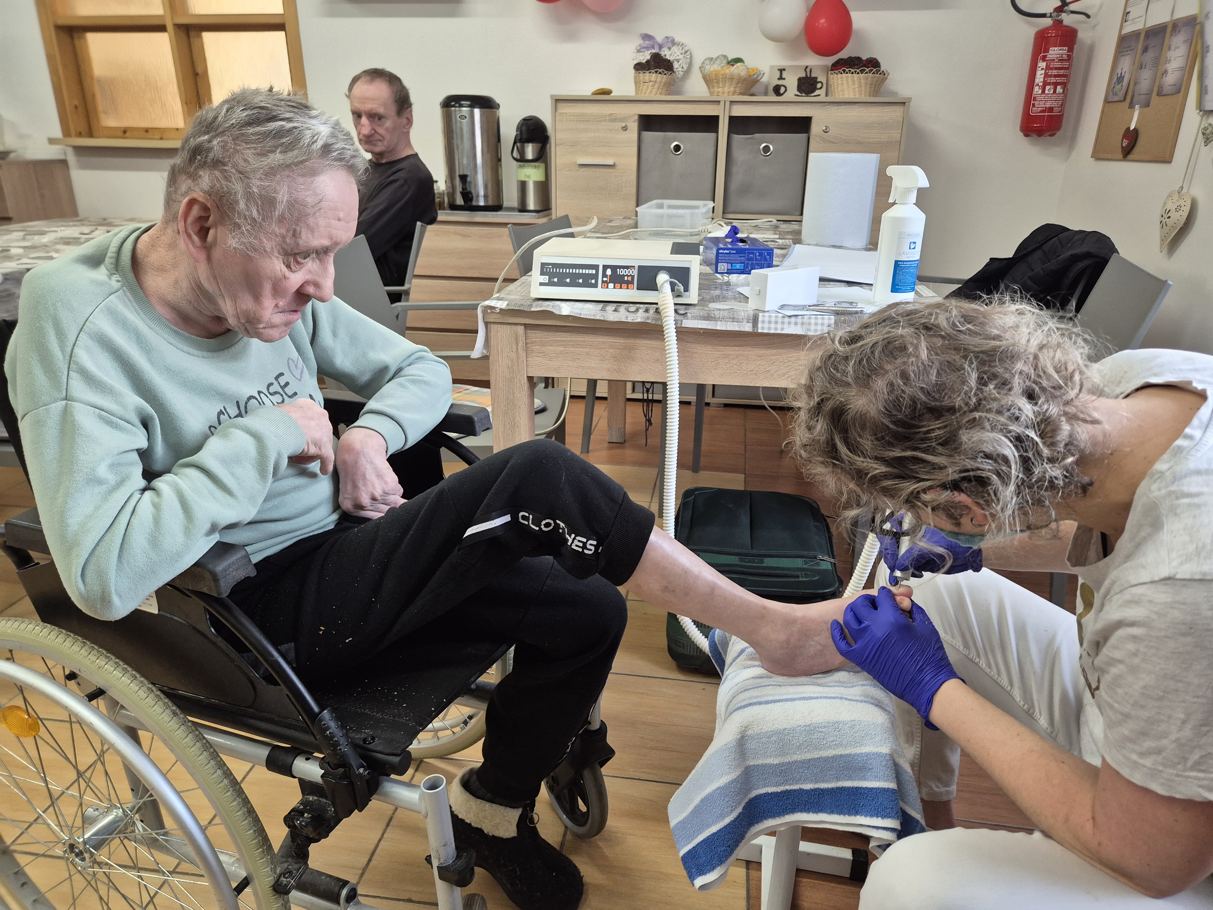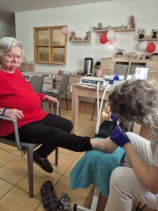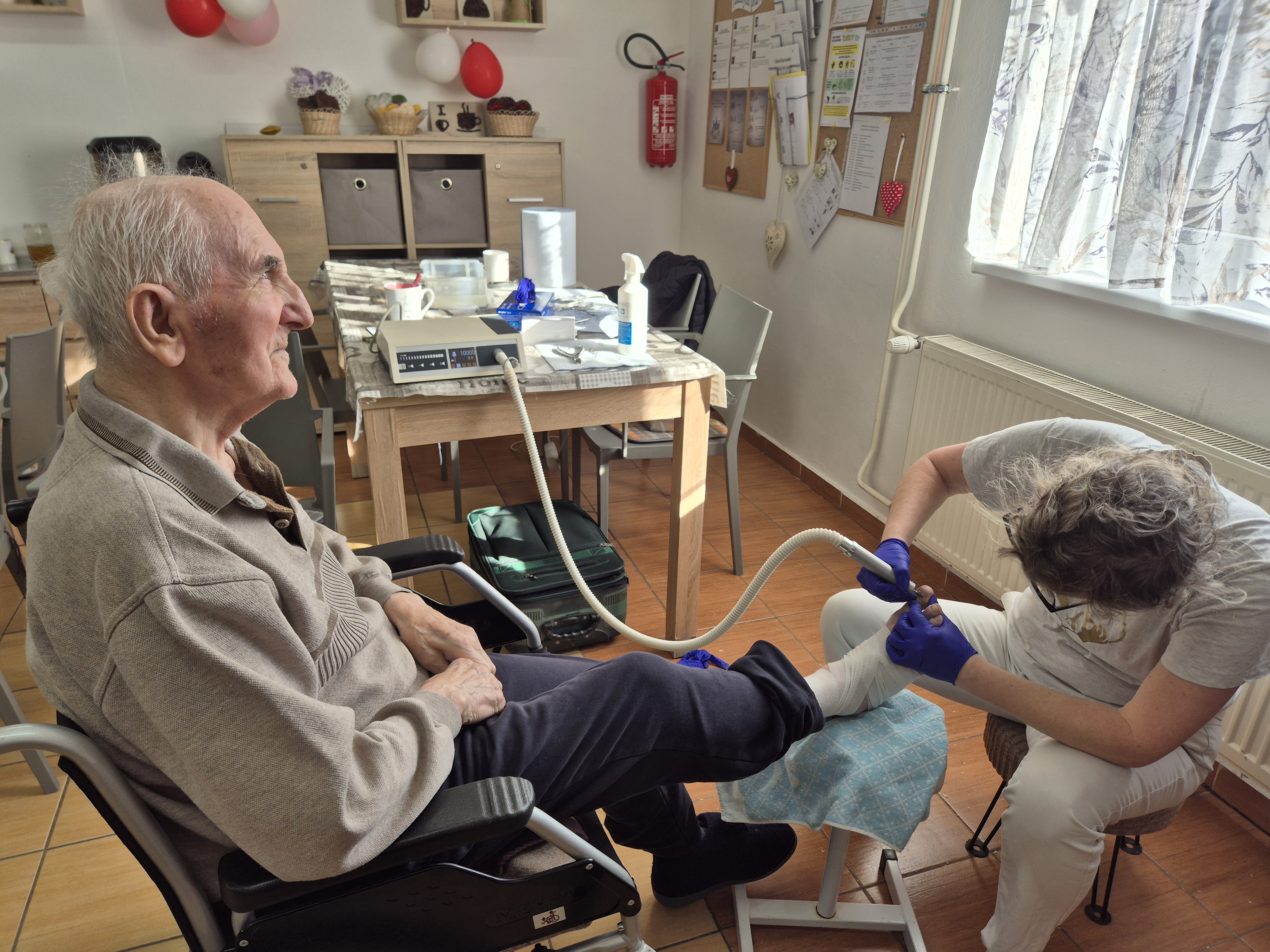 Pedikérka p. Lenka prináša našim prijímateľom nielen odbornú starostlivosť, ale aj úsmev, pokoj a chvíľu starostlivosti, na ktorú sa tešia. Aj imobilní prijímatelia si zaslúžia cítiť sa dôstojne, komfortne a mať pocit starostlivosti o svoje telo.